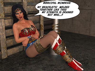 Wow, the bad guy had better watch what he wishes for! What if she comes out a dominatrix - with a WHIP!? She'll just flail him stupid - and he'll LOVE IT! Wundie's never looked better though! I just wish there was an equally built blonde kicking around who'd kick her sweet little cunt to a pulp!
