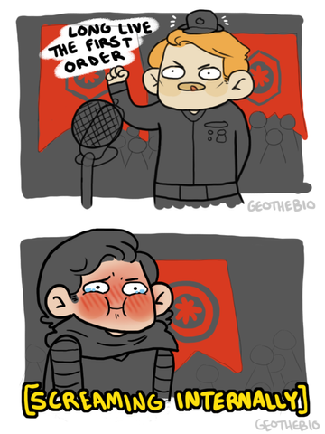 Kylo Ren (as Matt): "That's so mean." (rips off poster before knocking over a storm trooper's lunch, and then throwing another one's soda at a wall in anger)
