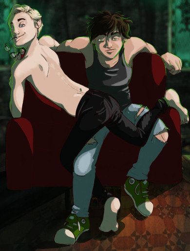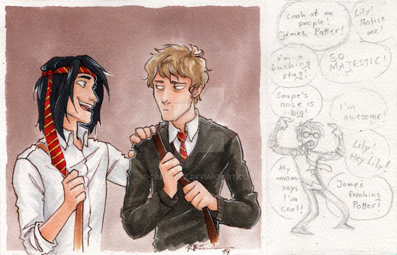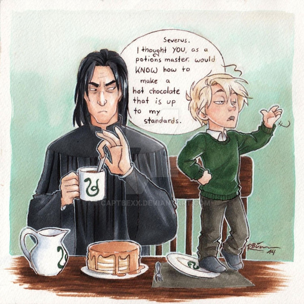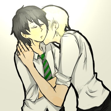 My only quibble with this is that I think Neville is a little too tall here. I'm pretty sure the books say that he's short and pudgy, so I think that Draco would be taller than him. Other than that, this is adorable! I love your artΒ Β Β