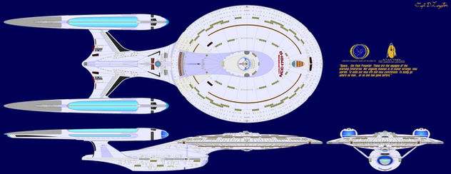 (In the Langston Universe)In 2363, shortly after Starfleet launched the Enterprise-B, the Corps of Engineers began to develop the Wanderer-class long range explorer. This vessel fell back to the concept of the mid-23rd-century missions of the Constitution-class where vessels would be exploring the galaxy for years at a time and was considered "more advanced than the Enterprise-B" due to its role strictly as a scientific explorer and research vessel rather than a cruiser or a dreadnought. Very rarely was the Wanderer-class placed on border patrol or colony transports. Also Admiral's where not allowed to utilize the Wanderer's as their personnel flagships by order of the Commander-in-Chief of Starfleet. One of the unique design elements of the Wanderer was the prototype warp nacelle pylons which angled when going to warp, a quality which has not been observed in any other starship. This design element caused a number of issues doing its construction.