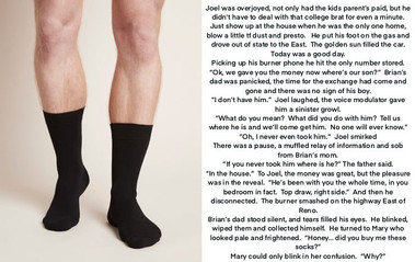 After a few hours of this Jacob began slowing fading in and out of unconscious. The stress of what was going on was getting to him and it was in this semi-lucid state that Jacob heard the man speak once more. “Don’t give up on me already little buddy. I still need you to experiencing being tied down to my dick and being shoved inside a woman’s vagina. Or on second thought, maybe you can just stay in there for now. That way we can let my partner experiencing having a toy in my butt when he sticks his dick into me next time around.”