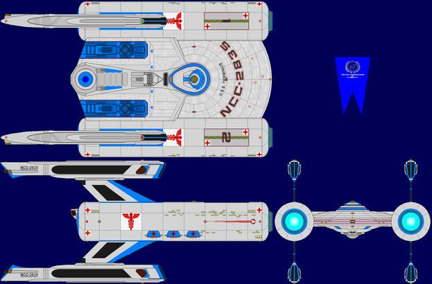 The Solace Class Hospitol Ship is another pre-TOS (pre-Federation) design by Masao Okazaki at the "Starfleet Museum". And is a sub class of the Olympus Mons. And can be found here [link]Related content