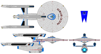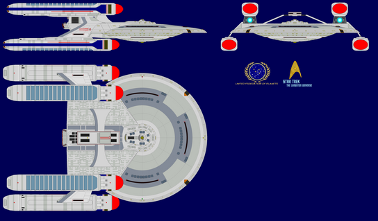 Looks cool, and the hull configuration is significantly better than that of most fanon designs- looks like she fits in-universe, doesn't look too fragile, and doesn't look so sturdy, Starfleet must bankrupt itself to pay for the ship's construction (my main beef with ships with multiple engineering sections).