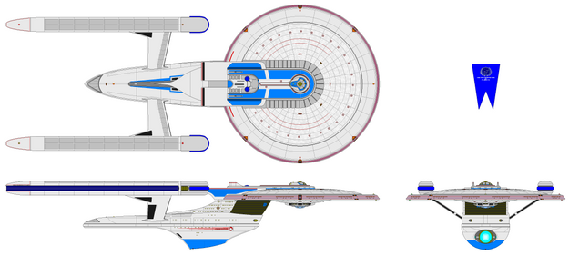 Went off of the old 1986 blueprints. Supposedly the original design that the Excelsior was going to be. But they made some modifications and the Excelsior Class was born. Only ship of the class made, was the Ingram.