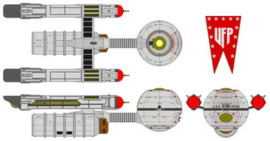 The Kennedy Class Carrier is a TOS / pre-TOS design by Christopher Donovan...Mods and top view extrapolation by me.A design so heavily kit-bashed, I had to make minor alterations, in spots, to make it feasible.