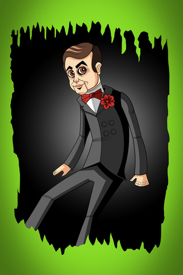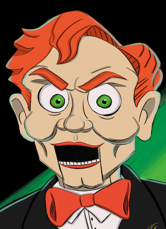 "The name's Slappy and I'm going to make you an offer you can't refuse..." Done in honor of the Goosebumps movie that came out the past weekend, which I saw and enjoyed very much. I hand inked it and then scanned it and colored it using photo-shop. The movie gave him brown eyes but I wanted to give Slappy his original green eyes he's had in the books/tv series. I feel like it suits him more.