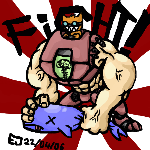I just drew him doing the Buster for the heck of it, not really being acurate or anything.