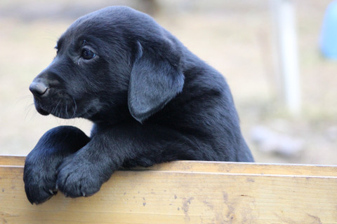 Definitely sand. The characteristics of its cohesion, no plume of breath, along with none of it on the pup,Β give it away.