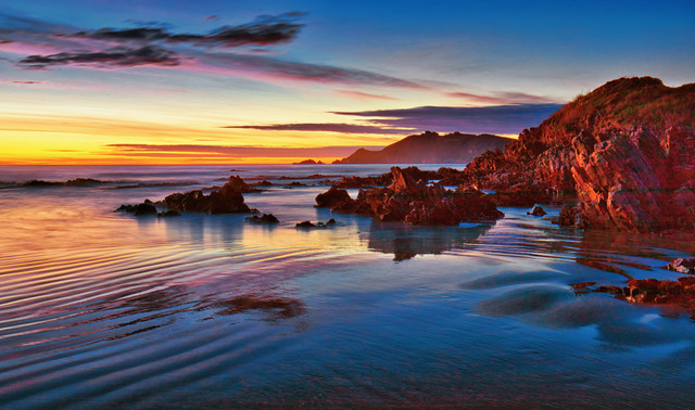 The beach at Kaka Point, yesterday morning not long after sunrise, cloudy day , tripod, cable release, lee polariser, raw file tweaked in Nik colorefex. Thank you so much for viewing my work.Related content