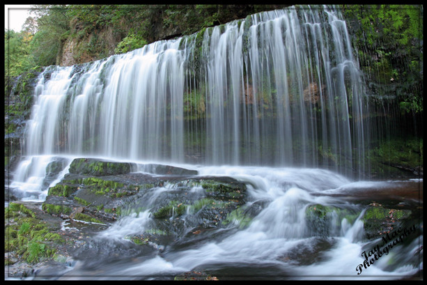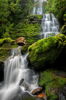 Canon 5D MkII, 14mm, F/2.8, ISO 800, 200 x 20 seconds exposures. About a 90% Moon illuminated Moon is lighting up the landscape. The cliff face and foreground to the left of the falls was light painted with a torch during one of the exposures.