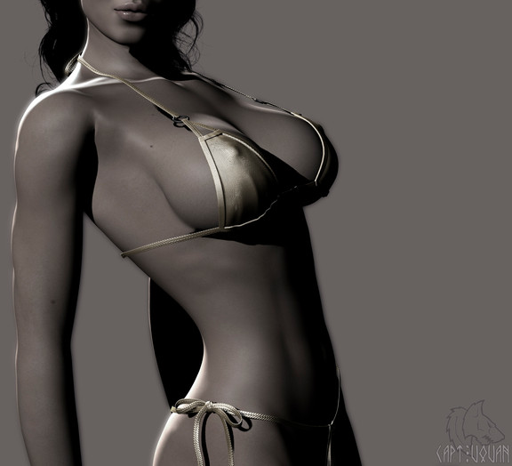 Too much shadow covering the most important area. Can't see what's going on there. Thigh looks nice. Abdomen acceptable. Arms could be better shaped. Good work on the fingers. Hands still look a little strange from the webbing of the thumbs. Overall image looks smooth and complete. Good pose. A fine image indeed.