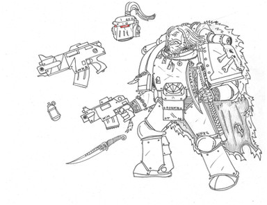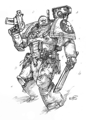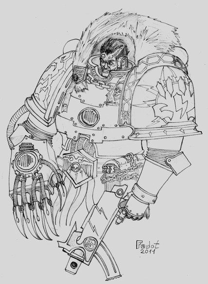 Я в роли спейсвулфа Вована Саблезубого. Арт остается на этой стадии, много косяков в исполнении, перерисовывается.Myself, like Space Wolve Vovan Sabertooth