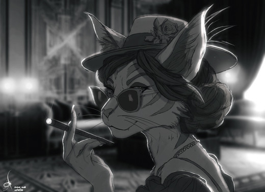 She appears to be a really serious character. Great monochromatic art you made there!