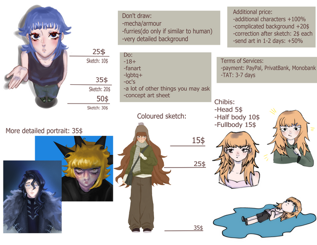- NSFW (I only draw nudity, nothing more. The price with such content will be higher).