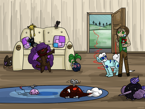 Jangle fell to sleep wrapped around her favourite plushie. It was a big squishy Dragonite with buttons for eyes and crinkly blue baby material on its wings and belly. She'd had this toy, which had been carefully crafted by her trainer, ever since arriving at this ranch and she would always wrap herself around it on a night. It made her feel warm and safe.