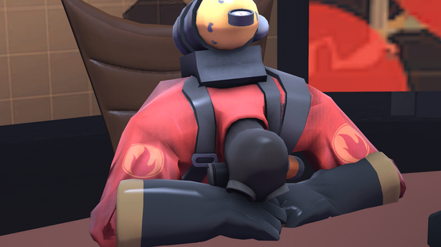 Aww, thats so cute. Yay for odd love, especially when Pryo gets some loving attention. Even though Scout's on the opposite team, he doesnt seem to mind the love Scout gives him.