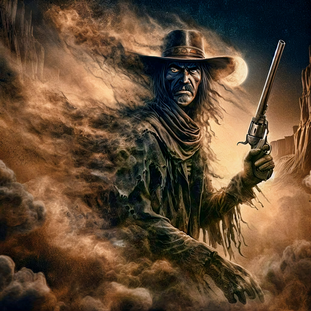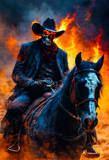 #ai #horseman #oldwest #town #frontiertown #weirdwest #fire #blaze #burning #cloak #cloakedfigure #cowboy #cowboyhat #dalle3 #deadlands #demonic #fiery #fireelemental #flames #frontier #gothic #gunslinger #hood #hooded #leonardo #rider #tattered #western #wildwest #aiart