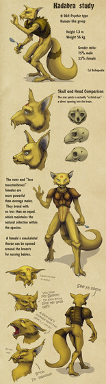 I have a thing for weird pokemon. Well, I adore Eevelutions just like everyone else, and have the same nostalgic affection for Pikachu and Charizard. Though it's not enough to go and remake their concept. But there are pokemon that look nice mostly in fanart, and not in the game. I don't believe in monsters with thick forearms and skinny shoulders and only four teeth, so here's my version of Exploud. I think they can have individual patterns, so this one looks somewhat Aztec with all these "golden rings". It would be logical for Exploud to attack on all fours, so that it'd have a decent foothold and wouldn't be thrown back with its own terrible blast of sound. Their heavy build serves the same purpose; they have huge lungs and powerful chest muscles. Exploud's omnivorous and somewhat lazy, as they're not threatened often, but if there's a predator stupid enough, it will most likely end up deaf.Related content