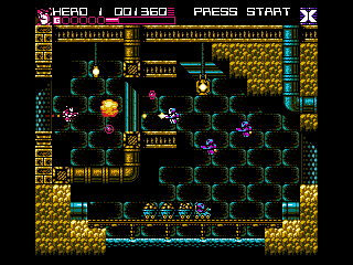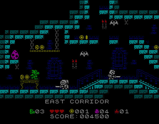 Simple example showing how I don’t need to use any more memory just to have ED-209 rise up along those metal back parts of his legs (which form his unusual walking method) by just off-setting the top sprites and keeping the leg sprite in place. Simple stuff. The real work comes when I have to redraw the legs swinging for the walk cycle.
