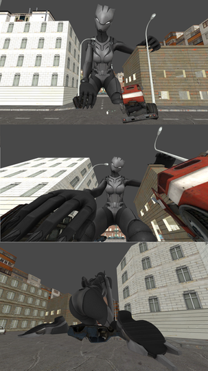 Raven: *Crushes some cars under her heels and falls*