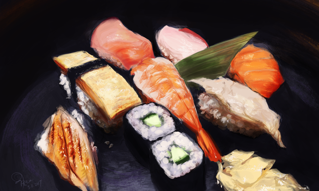 How unique to depict food like that. YUM! Looks awesome. Love how you colored it. Very realistic.