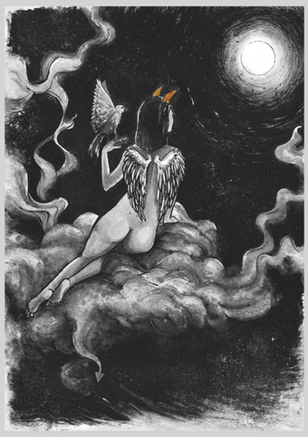 #acrylic #clouds #feathers #gold #golden #painting #back #angel #wings