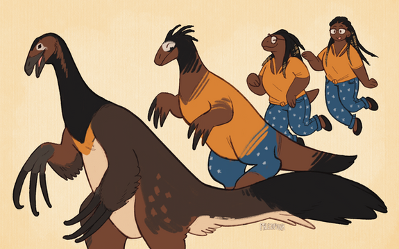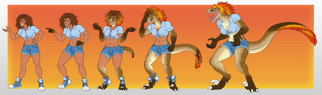 #anthro #brenda #carol #caroline #character #commission #dino #dinosaur #feathered #female #gal #oc #original #raptor #sequence #tf #theropod #transformation #kougro #schwaderer #carolzilla #curlyhair