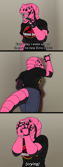 Ele queria uma sequencia de TF da personagem dele virando um raptor e que as proteses estao injetando nanites no corpo dela, o qual causa a transformaçao