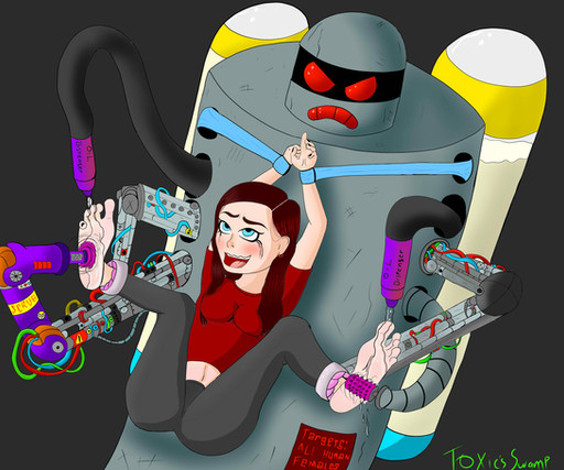 Cute I wish we could see a set of robot fingers on her belly and in her belly button.