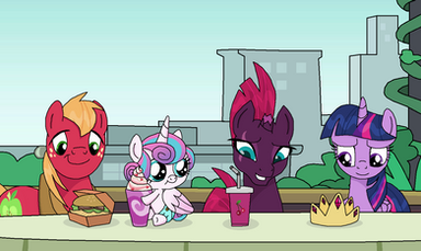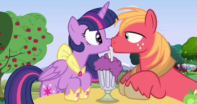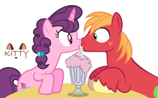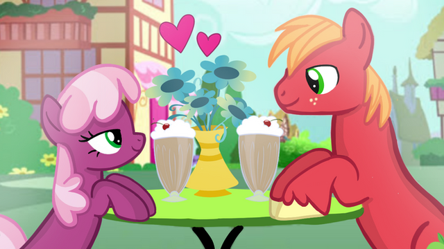 What can I say, I'm warming up to base edits! They're fun, easy to do, and I can show scenes with 'em!Cadence and Big Mac's first date, they went to a cafe near the school, ordered a few treats and a milkshake to share and just enjoyed each other's company - of course, they can't share a milkshake and not bump snouts. <3