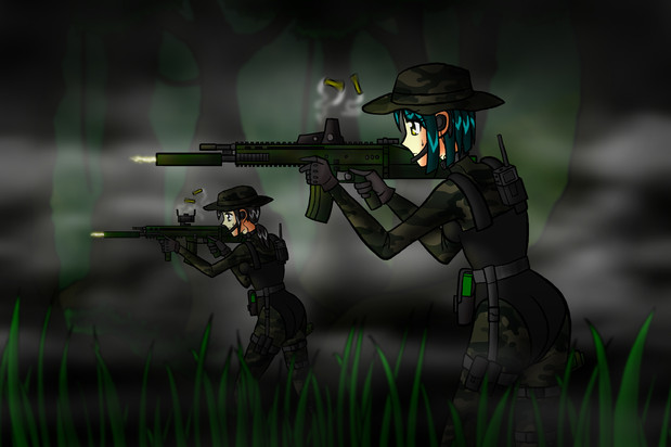 "Keep calling, Rose!" Sakura answered," We need air support or we're dead!" Then, she turned into other patrol members,"Yuki, Jasmin, take left flank so we can get wider beaten zone. Hana, you and me have to keep the enemy supressed."