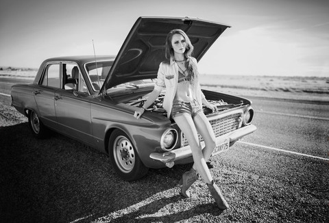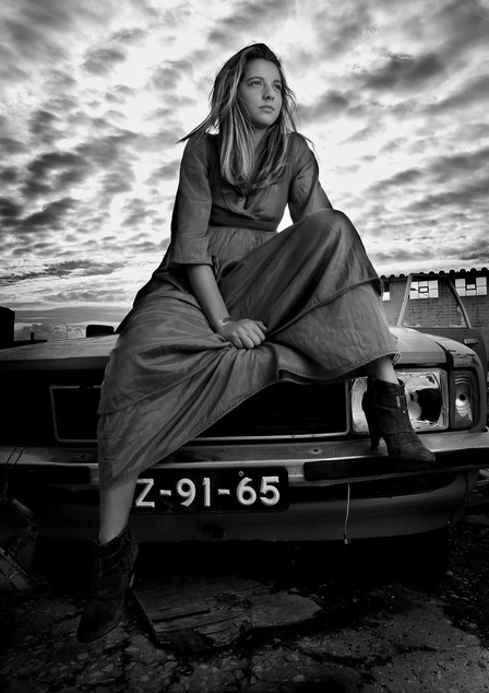 fajny klimat, świetna kompozycja i kadr, doskonale to wygląda w czerni i bieli... piękna Zastawa, śliczna modelka... jedyne zastrzeżenie mam do puszki... szklana butelka byłaby chyba jeszcze bardziej odpowiednia