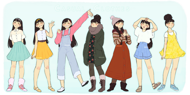 Quick outfit sketches of Nelma, who belongs to my preciousFirst one is for spring/summer and the second one is for autumn ;w;/