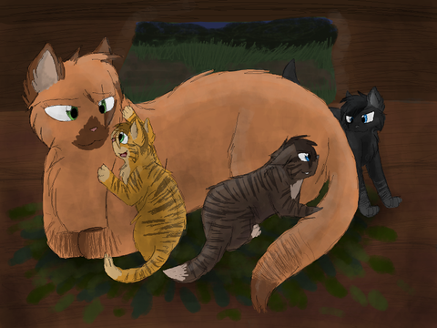 You know, Iβm sorta wondering whether LionBlaze could be a reference to their relationship. Because, heβs actually quite alike in appearance to Mothwing. Which also gets me thinking, whether Jayfeather could be a reference to Feathertail (and her dumb relationship). And Hollyleafs genetics.... I guess, since Crowβs described as grey black.... then if he was dark BLUE then that would make sense. (Since Blue is the dilute version of black)