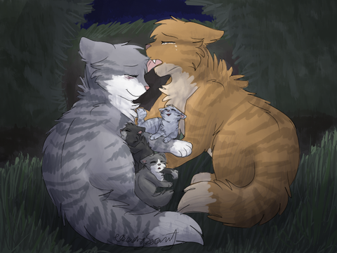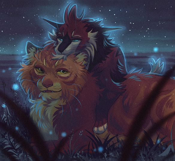 Ahhh my ship. If only the erins made this cannon I swear I would be screaming of joy :00 Your art is beautiful and I absolutely love everything about it, have an amazing day and may starclan light your pathΒ Β