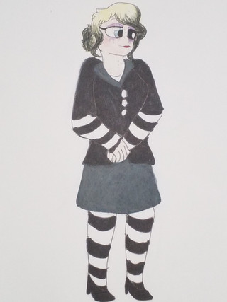 A Ghostly Goth girl from the 90s. She's one of the many Ghosts haunting Gracey Manor. And she was one of the many to have died on the Grounds.In life, she heard rumors about Gracey Manor's haunted history, so went there one night to perform a seance.