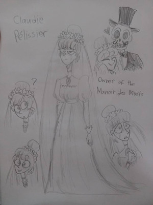 In an attempt to bring this tragic spectre from Marc Davis's concept art to life: www.hauntedmansion.com/images/… I decided to check the internet for different wedding gowns in the late 19th century, though preferably used illustrations as it was easier. And bam! I found this: pin.it/6GoDKxO I was mostly in it due to the wedding veil, but I finally had a concept, and I made the doodle you see in top.Any thoughts?