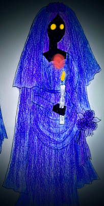 she's often found in the graveyard, partying out with the other happy haunts. she's friends with a woman named Samantha, (the ghost of a miserable woman who just wanted love, not being treated like an object)
