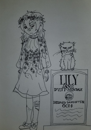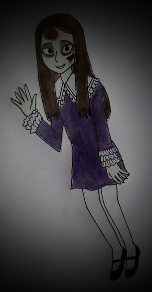 A quiet bookworm, one of the many ghosts haunting Gracey Manor.Being the lonely quiet kid at her school, because of this, the other students loved making fun of her. Before the school year ended, the library burned down, nobody knew who did, but poor Lavender was blamed as she was alledgedly the last one seen going in the library. The reality is that a classmate of hers accidentally caused it by lighting a cigarette and dropping it out of shock of how hote it was. Poor Lavender had gotten tired of getting harrassed by the other students, she jumped out of window, and fell to her death.