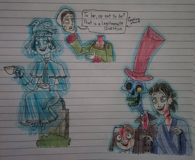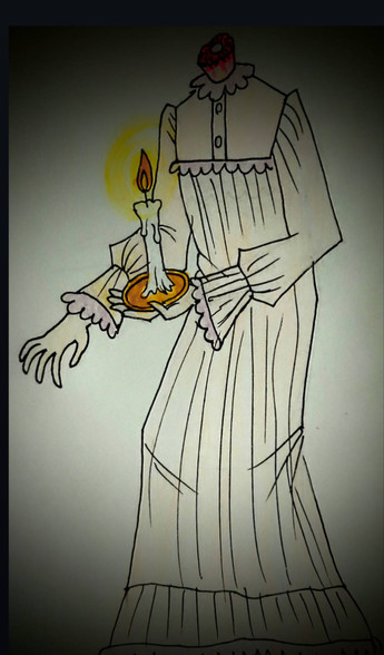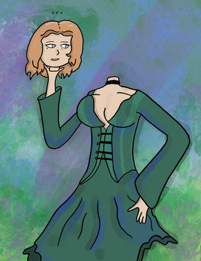 A Teenage girl in the 90s, who was on her way to attend prom, but died in a fatal car accident which ended with her losing her head. She's now one of the many happy haunts haunting Gracey Manor.She's often found in the ballroom, dancing with another ghost who too died on they're way to a party. And she's a good friend with Resurrection Mary, a hitchhicking ghost who died while LEAVING prom.
