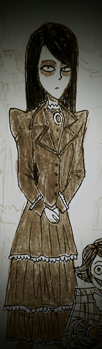 One of the 999 Ghosts of the Mansion. the curse took advantage of her insecurities, and so, whenever she looks in the mirror, she'd see a ghoulish reflection looking back at her, this frightens her, to the point she smashed every mirror she could find. but even when she did so, the reflection still stares back at her through the shards. eventually, she's driven mad from it all, that she slit her wrists with the broken shards, thus killing herself.she Haunts the room she killed herself in, ever since her death, her room was renovated when the new owners moved in. a new mirror was placed. ever since then, her Ghost is often seen in the mirror's reflection of the room, even taking the place of whoever is staring at the mirror in place of the person's reflection.