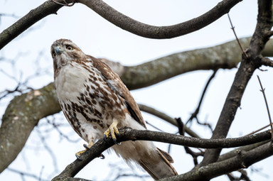 A Broad-winged hawk, looking majestic and fierce, surveys his territory one fine morning, from atop a parking lot light outside the local Target.Wikipedia article about the species: Broad-winged hawk - Wikipedia