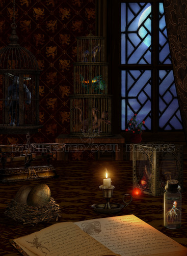 #beam #book #cage #candle #cat #chair #cloth #collect #collector #cottage #crow #desk #dragon #dungeon #fae #fairy #feather #fireplace #galaxy #gold #green #herb #hoarder #lab #laboratory #lamp #library #magic #magician #man