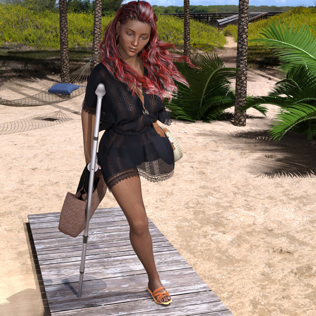 She Desited to go on beach sunbathing,to bad she cant go bathing in sea.Previous picture: Victoria leaving hospital