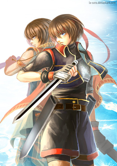 Anyway, fanart of Adol (red guy) and Isha (blue girl) from the game "Ys VI - The Ark of Napishtim". The pic is inspired by the first boss encounter in the game + the boss music (titled "Mighty Obstacle"
