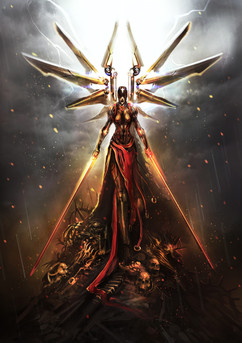 I like the use of blue and purple. The scythe maybe could have been longer but I guess that one works. Only thing that somewhat seems out of place are the hounds near the bottom of the pic but all in all very cool.