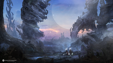 Really nice. I see what you mean about similar composition and mood, they are definitely very similar - maybe it's the lighting, they all seem to share the same lighting setup, gloomy foregrounds with a highlight half way up vertically ( albeit different sources ). I was imagining what one would look like if say it's lighting was switched to a stark light from left or right. Very different feel I think.