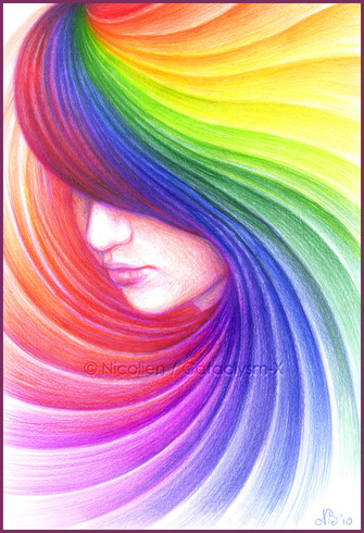 You have no idea how much i ove this picture... the rainbow colours, the hair, the profile...