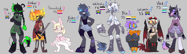 all the kids. weiss is my favorite. theyre all 21, lucent is the tallest and weiss is the shortest