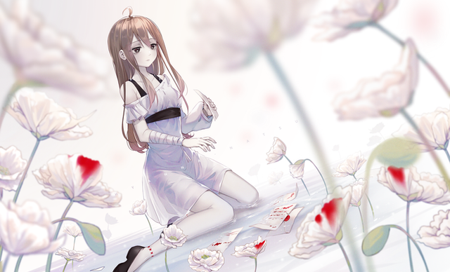 #anime #animegirl #gun #kawaii #petals #pinkhair #roses #ventart #whitedress #animeroses #vent_art